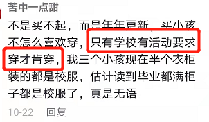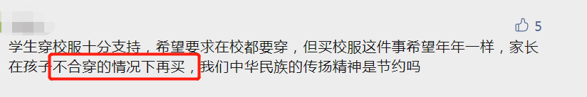 其實很多的家長并不是反對學生穿校服,而是希望校服的款式不用年年換,在孩子不合穿的情況下再買。