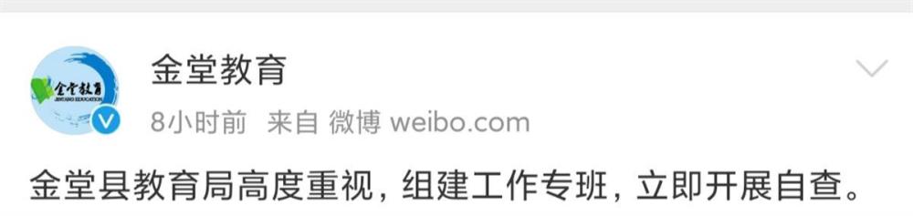 16日凌晨,金堂縣教育局就此事發布微博稱:金堂縣教育局高度重視,組建工作專班,立即開展自查。16日上午,金龍鎮小學工作人員告訴極目新聞記者,對于網傳視頻反映的內容,他們已經成立了專班調查小組,待處理結果出來以后,將向社會公布。