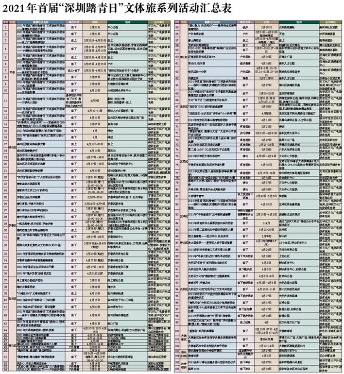 啟動儀式后,全市各區將陸續舉辦豐富多彩的相關系列活動,線上線下活動總數量多達106場,為市民感受深圳春天提供了豐盛的文體旅盛宴。