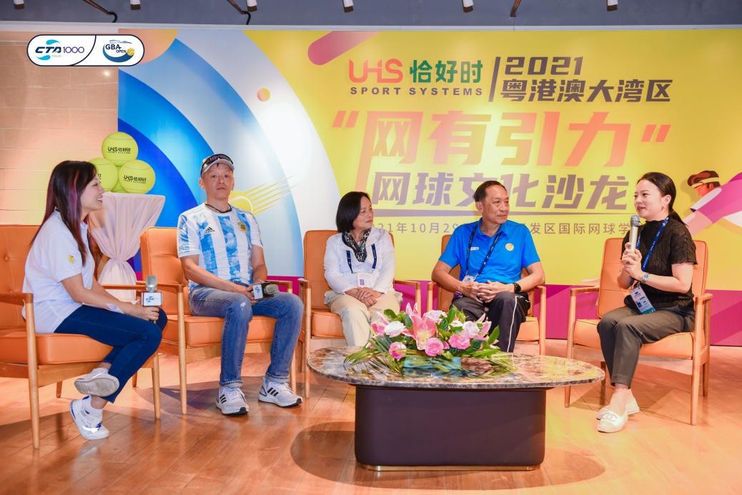 10月29日,2021中國網球巡回賽?時代中國?廣州黃埔站暨粵港澳大灣區網球公開賽結束四分之一決賽的爭奪。賽場外,由廣東省網球協會主辦,廣東恰好時體育有限公司冠名贊助的恰好時·2021粵港澳大灣區“網有引力”網球文化沙龍也在廣州開發區國際網球學校體育文化展覽室成功舉行,來自粵港澳三地的網球人共聚一堂,在回顧大灣區網球文化融合歷史的同時,也對粵港澳網球未來加強交流、共同發展前景寄予更高期待。
