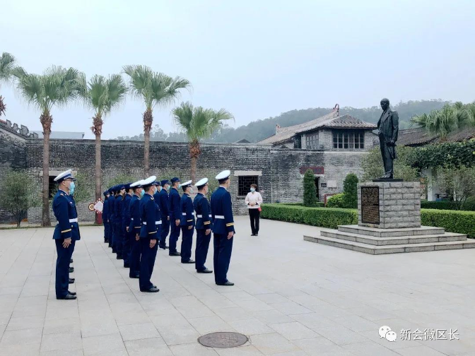 當天上午,身穿火焰藍制服的新會區消防救援大隊指戰員們走進梁啟超故居紀念館,先后參觀了銅像廣場、梁啟超家風專題展廳等,瀏覽紀念館內陳列的著作典籍、書信手跡,聆聽講解員講述梁啟超先生生平事跡,學習梁啟超先生強烈的愛國主義精神和潤物無聲的家教家風,從中汲取智慧與力量。
