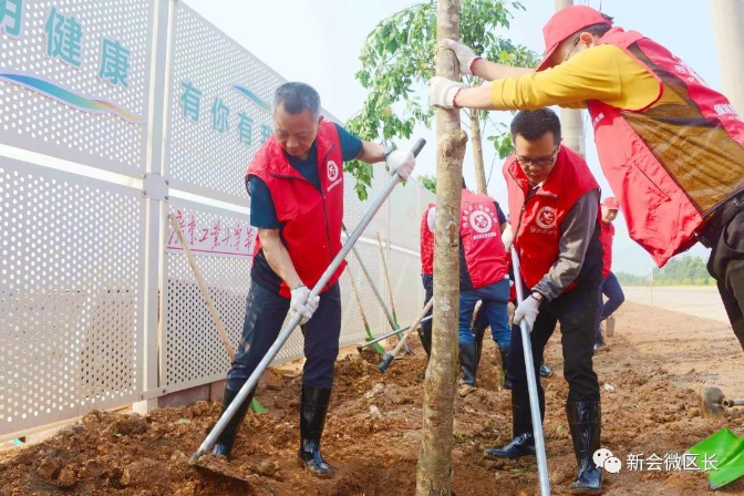 區委書記文彥,區委副書記、區長林錫波,區人大常委會主任梁遠球,區政協主席林社攸等區四套班子領導、駐區軍警部隊、區有關單位和濱海新區、古井鎮、大澤鎮、司前鎮的干部職工共約380人參加了植樹活動。其中,文彥參加濱海新區廣東工業大學華立學院江門校區的植樹,林錫波參加深江產業園司前園區的植樹,梁遠球參加珠西新材料集聚區的植樹,林社攸參加深江產業園大澤園區的植樹。