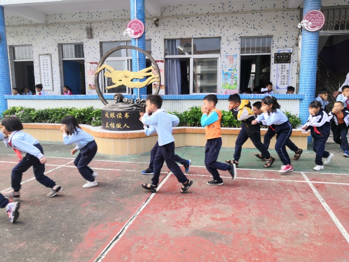 演練開(kāi)始,楊嘉麗老師通過(guò)校園廣播宣布:學(xué)校教學(xué)樓因電線短路起火,各班馬上組織學(xué)生有序地撤離課室,緊急疏散到安全地帶。隨著警報(bào)的響起,老師迅速組織學(xué)生疏散撤離。各班按照指定路線,貓著腰,用手、袖口等捂住口鼻,迅速有序地進(jìn)行緊急疏散,撤離到校園的安全地帶。然后各班清點(diǎn)了人數(shù),并進(jìn)行了匯報(bào)。