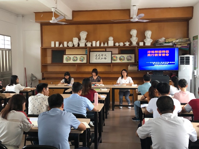 九月初,學(xué)校利用例會時間召開全體教職工的“淬煉師德師能,踐行育人使命”師德建設(shè)主題教育動員會議,全面?zhèn)鬟_省、市、鎮(zhèn)有關(guān)師德建設(shè)教育的有關(guān)精神。動員會上,陳媚芳校長開展了以“愛心創(chuàng)造奇跡,體罰近似無能”為主題的師德專題講座,教育和引導(dǎo)廣大教師不忘初心使命,堅持育人為本、德育為先的教育理念,自覺做到以德立身、以德立學(xué)、以德施教、以德育德,為培養(yǎng)德智體美勞全面發(fā)展的社會主義建設(shè)者和接班人而努力奮斗。在另一場專題講座上,全體教師重點學(xué)習(xí)《習(xí)近平談治國理政》第三卷和《習(xí)近平總書記教育重要論述講義》等主要內(nèi)容,持續(xù)深入地學(xué)習(xí)貫徹習(xí)近平新時代中國特色社會主義思想。