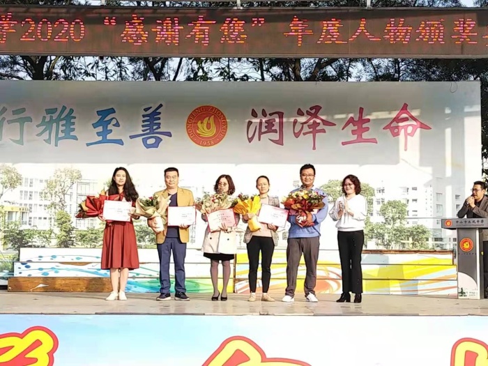 當莊嚴的國歌響起,開學典禮正式開始。首先舉行的是“東鳳中學2020‘感謝有你’年度人物頒獎”,經過學校各部門的推薦、學校行政會議的反復評選,最終評選出9個2020“感謝有你”年度人物。他們有的兢兢業業、默默耕耘;有的堅守基層,抗擊疫情,守護平安校園;有的舍小家,顧全局,一片赤誠為教育······他們以身作則,用行動詮釋“善雅”理念,證明平凡中也有偉大。