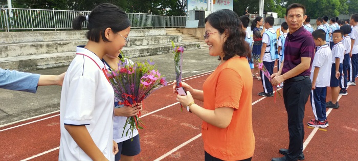秋天是收獲的季節,更是感恩的季節。為大力弘揚尊師重教的社會風尚,鼓勵教育工作者在教書育人崗位上為黨和人民事業作出新的更大的貢獻,9月10日上午,東鳳中學在運動場隆重舉行升旗儀式暨慶祝第36個教師節活動頒獎典禮,全體教職工及學生出席了此次活動。