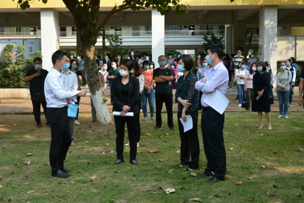 羅綺冬書記一行首先觀看并指導了東鳳中學疫情應急處置、入校晨檢等返校各種模擬演練,之后分三個小組對東鳳中學開學各項準備工作進行驗收,通過查看檔案、聽取匯報、詢問情況、實地檢查等方式,對東鳳中學的組織管理、校園環境設施管理、物資保障、人員管理、教育培訓和應急處置準備等6個大項,57個小項工作逐一進行檢查,聽取了東鳳中學校長劉喜全關于師生健康信息申報、疫情處置培訓、學生返校復課安排等方面的工作匯報,檢查了學校飯堂、學生宿舍、臨時隔離觀察點、防控物資儲備情況,查看了校園清潔與消毒的臺賬、師生防疫健康教育臺賬、防疫健康教育宣傳工作等情況。