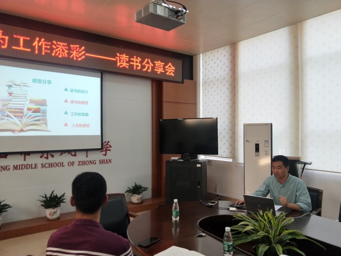 本次教師讀書分享交流會由五位教師先后分享其最近讀書的收獲以及感想。首先是易理亮,他以“風月一庭為良友,詩書半榻是嚴師”為題,分享了《教育未來簡史》以及《德育主任新方略》所帶給他的啟發。易理亮分享了《教育未來簡史》中所闡述的教育發展趨勢以及學校教育所面臨的危機,根據《德育主任新方略》一書,易理亮則從加強部門建設和重視隊伍建設兩方面重新考量德育工作。