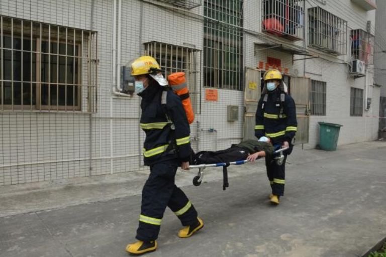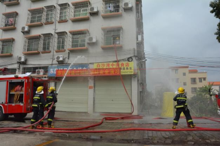 本次演練模擬白沙灣東祥路35號出租屋二樓發(fā)生火災(zāi),火勢迅速蔓延,房東發(fā)現(xiàn)火情后,立即撥打119報警,街道專職消防隊接警后,共出動4臺消防車,18名消防員趕赴現(xiàn)場處置。外攻組鋪設(shè)雙干線水槍兩支從著火層外圍壓制火勢進一步向周邊蔓延,內(nèi)攻組進到出租屋二樓通過垂直鋪設(shè)兩路水帶對房間內(nèi)火勢進行控制。在所有參演單位的迅速聯(lián)動、各司其職、團結(jié)協(xié)作下,火災(zāi)被成功撲滅,被困者順利救出,演練圓滿結(jié)束并取得實效。