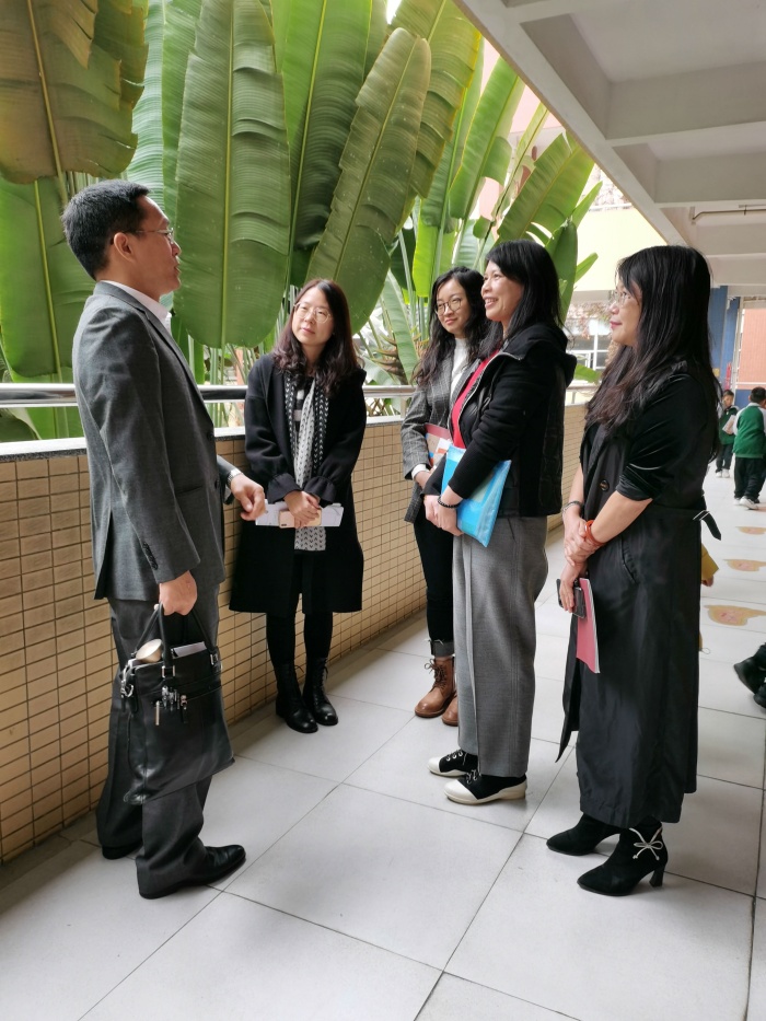 課后,督導(dǎo)組成員與上課老師們親切交流,了解老師們的備課情況、作業(yè)批改情況等。