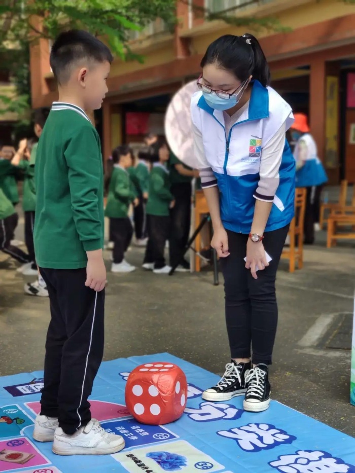 志愿者們以一個個垃圾分類實例作導引,向同學們講解垃圾分類的相關知識,并分發垃圾分類宣傳手冊。實踐驗真知,蘊含垃圾分類知識的趣味游戲將活動推向高潮。現場不僅有益智的“垃圾分類大轉盤”“垃圾分類模擬投放”“垃圾分類有獎問答”,還有動腦又動手的“垃圾分類拼圖游戲”和“垃圾分類跳飛機”“垃圾分類投籃”,各種趣味小游戲吸引了同學們的熱情參與,現場氣氛熱烈,同學們在游戲互動中不斷鞏固垃圾分類知識。在“垃圾分類有獎問答”游戲環節,同學們聚精會神,根據志愿者的口令或問題,準確回答垃圾分類的問題,不僅考驗了大家對垃圾分類的了解,也鍛煉了反應能力,小朋友們玩得不亦樂乎。