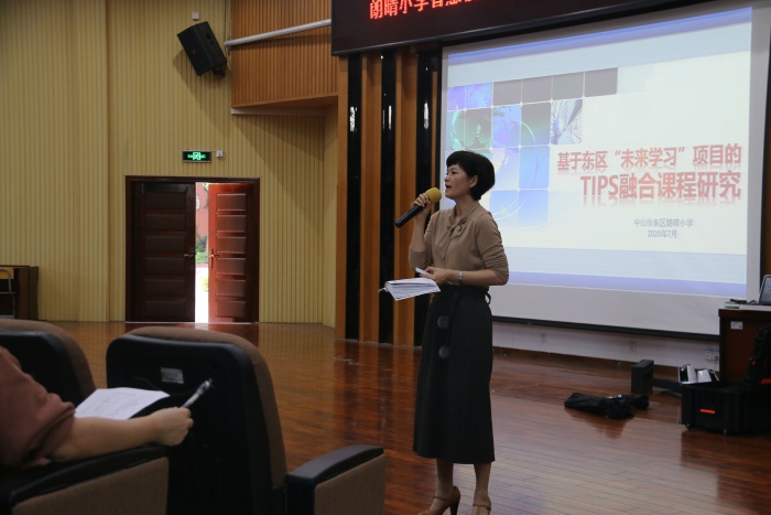 會議梳理了朗晴小學“基于東區‘未來學習’項目的TIPS融合課程研究”獲中山市教育技術中心立項的緣由歷程,再次重述“TIPS”內涵,即技術支持的學習(Techology &Media),跨學科的融合課程(Integrated curriculum),基于項目的學習(Project Based learning),培養合作的社會技能(Social skills)。就項目開展過程中的困惑與中山市教育技術中心的反饋意見進行了梳理。在此基礎上,陳麗媛主任闡述了項目的后期建設與規劃要求,明確指出應以完善和構建智慧教學環境,實踐與實施智慧教學模式,開發、應用與共享數學資源為研究目標,各學科組長應成為中堅力量,更新教學理念,帶領學科組教師在實踐中探索創新,順利完成融合課程實踐課指標,積累經驗與智慧,最終助力學校轉變為實施數字化常態教學的新型智慧學校。