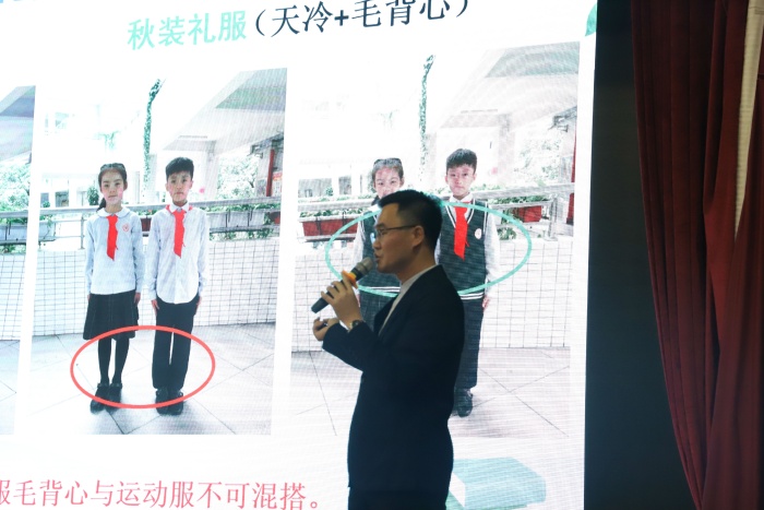 首先,黃文燦副校長從禮儀、著裝、紀律、衛生、午餐要求、值周中隊等方面向同學們詳細講解教育常規。對學生從進校到放學各個環節的行為規范作了詳細規定,讓學生有規可守、有章可循。特別強調課前、課中和課后的紀律要求。全體學生挺直腰板認真地聽,并在筆記本上做記錄。黃校長給學生們解讀了“教育懲戒”方案,堅定落實有“法”可依,“戒尺”育人,也讓學生認識到“教育懲戒”的方案宗旨、懲戒范圍和實施細則。