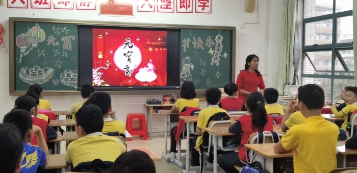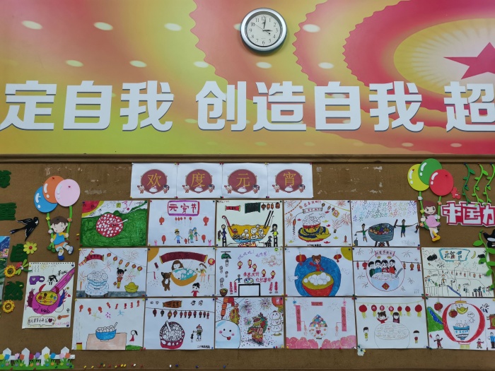 為慶祝傳統節日-元宵節,學校開展以“元宵節”為主題的繪畫比賽活動,美術老師通過每個中隊選送的畫作中選出5張優秀作品在A區大堂展出并且頒發一個文化傳承章。隨后,中隊輔導員在簡約環保的前提下與隊員一起布置課室,營造節日氛圍。