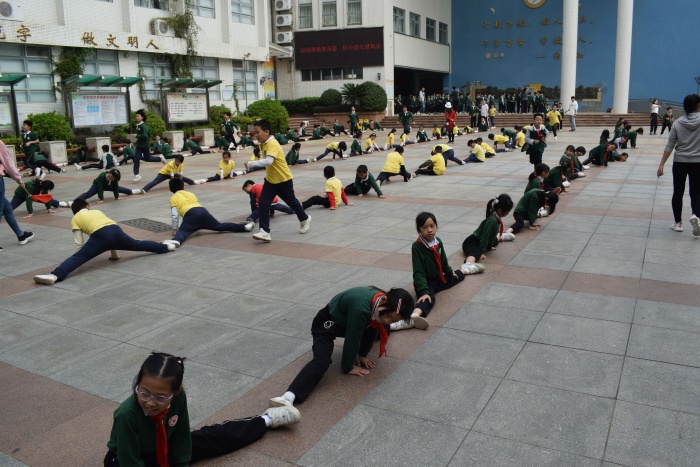 本次運動會的第二階段是12月11日進行的開幕式和團體運動項目。12月11日早上八點,原本安靜的校園沸騰起來,隨著激昂的音樂,國旗護衛隊和鼓號隊依次進場,拉開了運動會的序幕。優秀代表方隊的展示以社會主義核心價值觀為主題,隨著鏗鏘有力的腳步聲,十二個班級依次入場。精彩的開幕式表演后,進行的是升旗儀式。隨后,林小舟校長致開幕詞,運動員代表和裁判員代表依次宣誓。