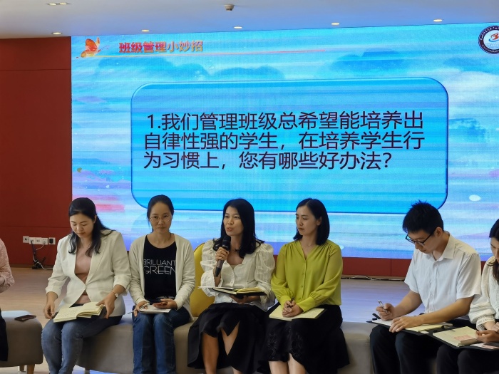 為了進一步提升班主任育人能力和管理水平,四所學校在此之前面向各校班主任收集了大家在育人過程中所產生的疑惑和面對的教育難題,并借此交流活動為契機,共研討,解疑惑,化難題,以達到外師內悟,智教慧育。活動以沙龍的形式開展,班主任們分別就“如何引導學生養成自律好習慣”“如何做到心中有尺,懲而有愛”“如何擺好重德與重分的天平”“如何把握家校溝通的度”和“如何引導家長忙而不亂,關心孩子心理健康”五個話題,進行熱烈地討論。大家在輕松愉快的氛圍中研討著,暢所欲言的背后是四校共謀發展、齊心育人的智慧力量、教育藝術。