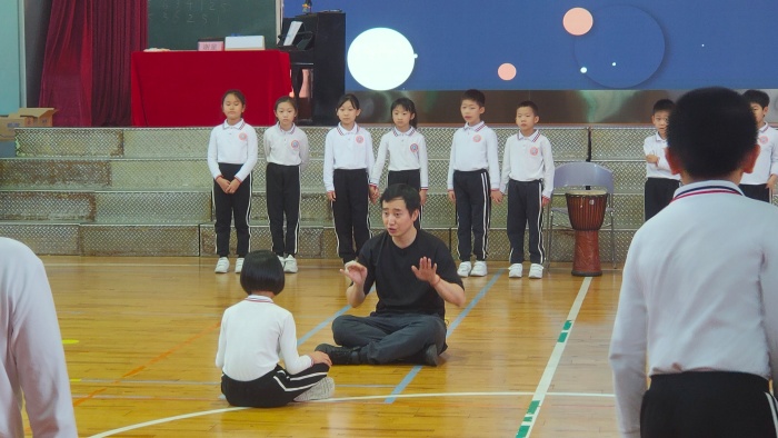 第二日,謝呈博士用東區水云軒小學三(4)班的同學上了一天的示范課。用體態律動與孩子一起感受音樂以及問好;運用籃球進行歌曲旋律的雙人互動;一曲多用,通過踏步、演唱、拍手進一步鞏固歌曲旋律的節奏;雙人互動,一人拍穩定拍,一人拍歌曲節奏;三拍子重拍拍球練習、三拍子雙人傳球練習、三拍子體態律動練習;跟隨音樂變化不同的體態律動,運用氣球來跟隨音樂作出變化。謝博士通過固定的音樂信號建立了穩定高效的教學秩序,有效培養了學生的聆聽習慣,使學生們能及時集中注意力并作出對應的反應,大大激發學生參與音樂課堂的熱情。