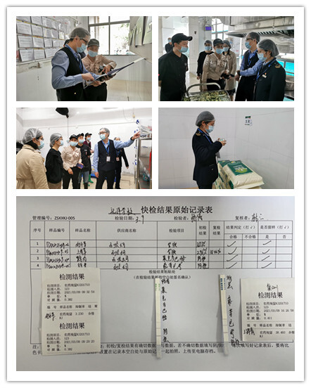 經(jīng)檢查,兩所學(xué)校整體食品安全狀況良好,食品加工烹調(diào)流程布局基本符合衛(wèi)生要求,學(xué)校快檢室能夠做到每日對食材進(jìn)行檢測,所使用的大米、食用油及調(diào)味料等均能提供對應(yīng)的檢驗合格證明,餐具的清洗、消毒和保潔工作落實到位,人員的健康管理和場所消毒有完善記錄,食堂員工在工作時能做到正確佩戴口罩,分餐時規(guī)范佩戴手套,倉庫中的食品能夠分類分架、離墻離地存放,貯存溫度符合要求。