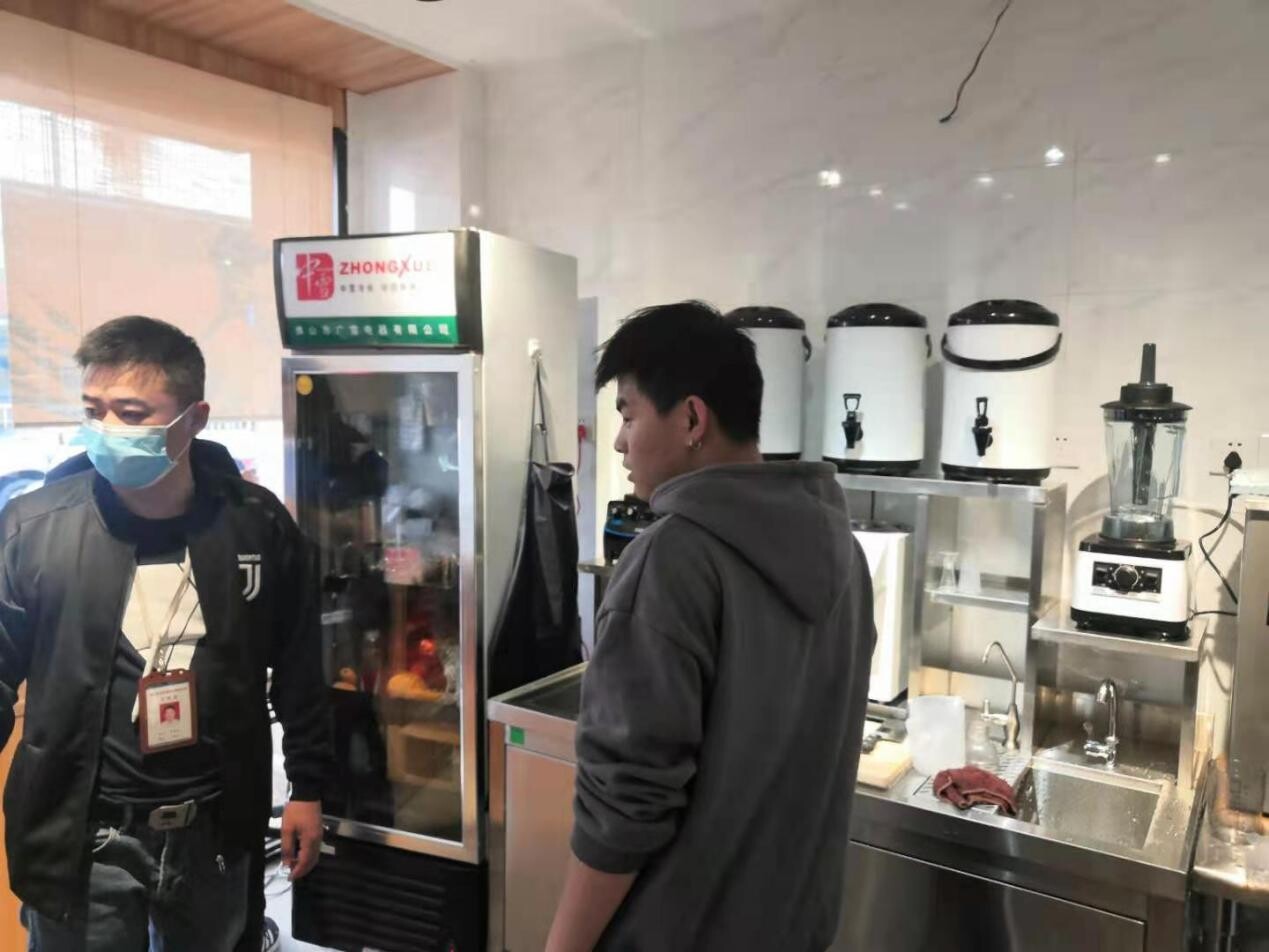 工作人員查看餐飲企業(yè)現(xiàn)場(chǎng)