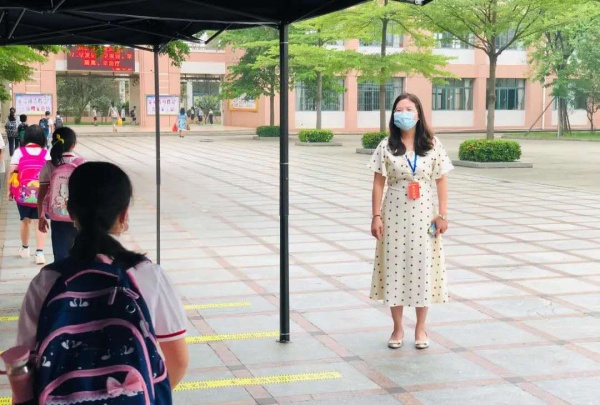 疫情發生后,學校黨支部高度重視,迅速行動起來,啟動防控疫情工作,制定方案,分配工作、明確職責,全力守護校園安全。從師生復學的第一天起,學校門口就設置疫情防控“黨員示范崗”,黨員同志每一天輪值堅守崗位,嚴把校門進出。清晨,輪崗黨員都以飽滿的精神,早早地守候在校門口,迎接返校的每一位同學們。有的對每一位進校的孩子進行認真的體溫檢測,有的進行交通指引,有的對進校通道進行清潔消毒,有的宣傳疫情預防知識……大家各司其職,共同守好校園的第一道屏障,確保學生安全、平穩、有序地返校。下午,孩子們放學了。黨員們完成了一天的教學工作后,又堅守在各自的崗位上,把孩子安全地送到家長手中。當最后一位孩子離校的時候,往往已是華燈初上了。