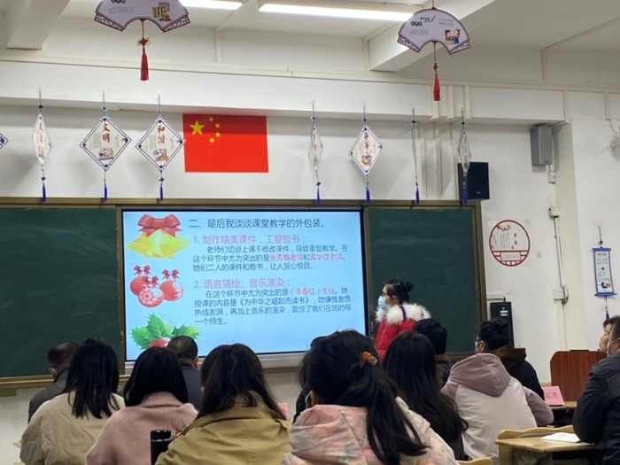 總結會首先由語文科組長植藝遠老師、數學科組長宋潔老師、英語科組長靜老師對本科組比賽情況進行了一次完整總結和具有針對性的評價。他們分別從自主課堂+語文學科的“讀中悟”;視頻+數學學科的“練中學”;學習單+“境中讀”進行了針對性的評課。并與老師進行交流,大家在交流中不僅拓展了視野,對自主課堂的模式更有了更深的理解。