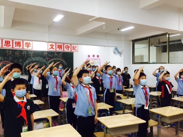 5月18日上午8時許,華盛學校四、五、六年級的全體師生召開了開學典禮。首先是升國旗,全體學生穿著整齊的校服,佩戴著鮮艷的紅領巾,在莊嚴的國旗下行隊禮,表達了對新學期的完美憧憬和向往。盡管現在還是疫情時期,受疫情管控的影響,只能在教室表達對祖國的熱愛和對學習的追求,但學生們個個意氣風發,老師們人人神采飛揚,無一人缺席這次開學典禮。