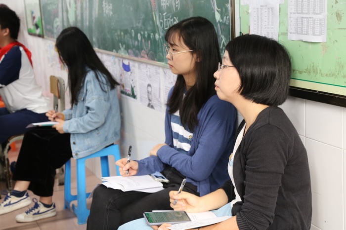 一大早,督導組成員分別步入教室,隨機旁聽了初一書法、地理、語文、數學以及初三英語、物理和數學等八節課。之后,學校師生進行了問卷調查。督導組還查閱了學校資料并巡視了校園。