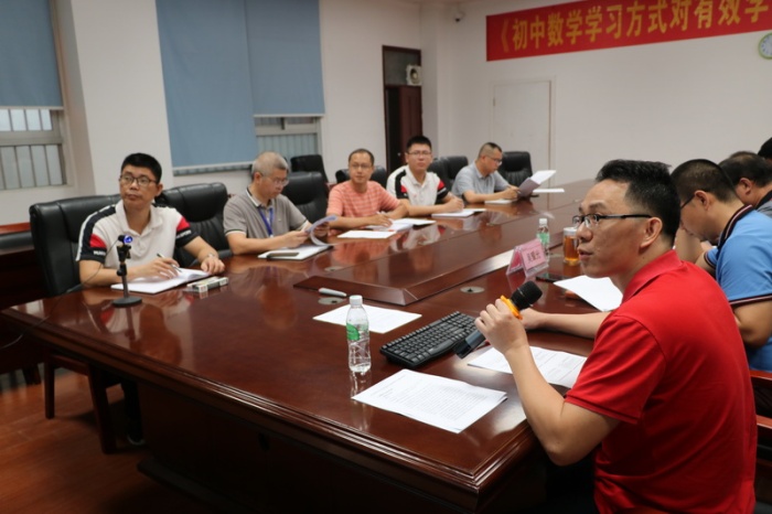 會議首先由課題組成員梁雄偉老師作中期匯報。梁老師就課題建設的主要內容、本階段研究情況、課題研究階段成效等方面作了詳細的解說與展示,指出了本課題與智慧課堂相結合,充分利用平板+網絡資源,逐步形成了“先學后教、小組合作、當堂檢測”的教學模式。他指出在課題組成員的共同努力下,東升中學數學老師的教學模式、課堂管理方式都產生了明顯的變化,進而開創了東升中學數學科組的總體成績穩步上揚的新局面。