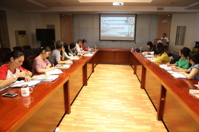 大師出馬,果然身手不凡。在短短的90分鐘內,陳希河老師從自身的成長經歷出發,將他的步步成長向同行們娓娓道來,給大家帶來文化上的洗禮和精神上的啟迪。古詩云:“千淘萬漉雖辛苦,吹盡狂沙始到金。”在經驗交流會上,陳老師現身說法,以自己的成長經歷為切入點,從“起點”(福建西山教育集團)介紹到“拐點”(浙江溫州私立學校),然后又從“拐點”介紹到“發展點”(中山市紀中三鑫雙語學校),毫無保留地給在座老師分享自己“媳婦熬成婆”的成功秘笈。他這些拼搏的事例無一不在告訴同行們,只要胸懷夢想,腳踏實地,埋頭苦干,種下希望就會有收獲。雖然陳老師在語文教育方面已經是行家里手,但他追求卓越的腳步從未停息,仍然要矢志將自己培養成一個“真正專業的語文人”。