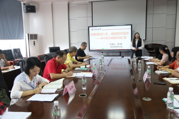 值得一提的是,在評課環節正式開始之前,東升鎮教育事務指導中心聽課調研組還聽取了東升中學初一年級語文學科楊娜老師代表該校名著閱讀課建設的情況匯報《名著浸潤心靈,閱讀陪伴成長》。該匯報主要從“如何進行閱讀頂層設計”、“如何激發學生閱讀興趣”、“如何培養學生閱讀能力”、“如何進行閱讀成果分享”、“如何將閱讀活動課題化”等專題進行詳細說明,這在一定程度上體現了東升中學出色的教研能力與校本課程開發能力。該報告也得到了與會專家的一致肯定。