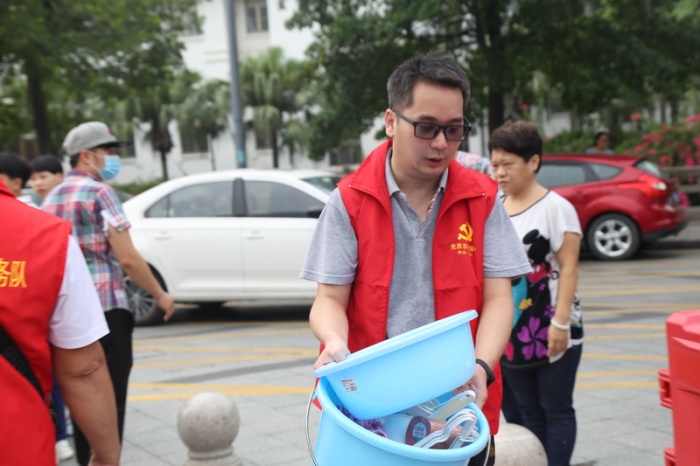 一大早,一輛輛大小汽車、摩托車、三輪車,裝著初三同學及他們大大小小的行李,車水馬龍般紛至沓來地涌到了學校校門口。東升中學師生志愿者快速進入角色。有疏導車輛通行的,有快速卸下學生及行李的,有幫手搬運行李入校的。不少黨員老師志愿者身穿紅馬褂忙碌其中,也有不少老師素裝上陣,加上學生志愿者小黃衣們,他們組成了一道風景線,讓校園門口變得溫馨、親切有加。初三的同學,見到老師同學來迎,感覺如回到另外一個家庭;家長們見到老師來接,忙亂的心一下子安定下來。一件件行李很快地交由老師們從車上卸下,又一件件地快速由志愿者們運進校園、運到學生的宿舍。在老師們勸導下,家長們帶著放心的心情,一輛輛車輛快速離開。就這樣,半個多小時的時間,初三同學入住學校活動就基本完成。