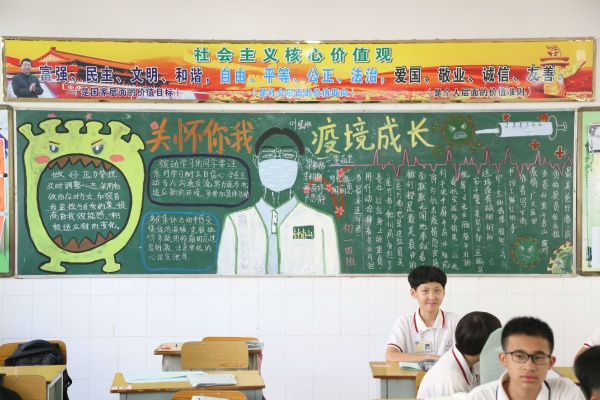 該活動得到東升中學各班師生的高度重視,特別是各班主任全力組織班上的同學們積極參與,緊緊圍繞主題,內容主要以戰疫英雄人物的事例、教同學們如何做好返校復學后自身心理防護的知識、生命教育等為重點,通過精心設計的圖案和內容詳實的文字著重向同學們普及心理健康知識。在為期兩個星期的時間里,同學們利用課余時間認真籌劃板報,經過精心的設計和不懈的努力,各班級均做到內容與主題相符,版面設計基本合理,報頭突出醒目,插圖恰切美觀,文字抄寫清楚端正,精美的黑板讓同學們對心理健康知識有了更深刻的體驗和感悟;也讓學生認識到遇到困難可以求助身邊的人,知道我們不是一個人在前行,而是一個團隊在前進;認識到心理健康在人的成長過程中的重要性,這為防疫期間學生們心理健康作出正面和科學宣傳與引導。精彩紛呈的心理健康教育活動月主題黑板報吸引了老師同學們爭相閱讀。