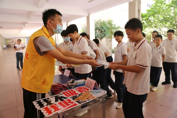 活動現場,東升鎮綜治維穩辦、禁毒辦和掃黑除惡辦工作人員利用課余時間到校園內開展禁毒宣傳活動。在宣傳的同時,禁毒辦還展示了前期與東升中學聯合制作以“禁毒”、“掃黑除惡”為主題的宣傳展板和展架,向廣大師生們介紹毒品的危害,講解禁毒的法律法規,以及吸食毒品對國家、社會、家庭、個人的嚴重危害,教育引導學生自覺抵制毒品。現場還設有禁毒元素趣味游戲,寓教于樂的形式讓學生們加深毒品認識。與此同時,掃黑除惡辦也展示了相關的展板和派發了掃黑除惡宣傳手冊。