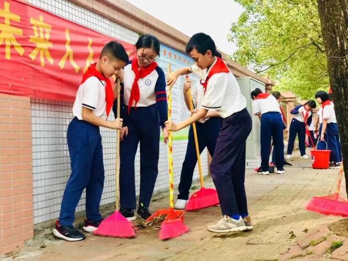 為了讓本次活動更有實效,學校少工委對大掃除的各項工作進行了詳細的部署,各中隊分工到位,責任到人,不放過任何一個角落。校內的衛(wèi)生清潔分別由低、中年級的隊員負責,對教室內的門窗、墻壁、地面、課桌椅及包干區(qū)內的綠化帶等地方進行打掃;校外周邊環(huán)境清潔由學校高年級的六個中隊負責,大家不怕臟、不怕累,忙得不亦樂乎!瞧,有的隊員清掃人行道上的垃圾,有的隊員把路旁的雜草清除干凈,有的隊員細心地把花壇中的枯葉、紙屑等垃圾清理干凈……烈日當空,隊員們的衣服都濕透了,卻沒有一句怨言,每個人的臉上都綻放著燦爛的笑容。經(jīng)過大家的辛勤勞動,校園內外變得干干凈凈,整個校園的面貌煥然一新。