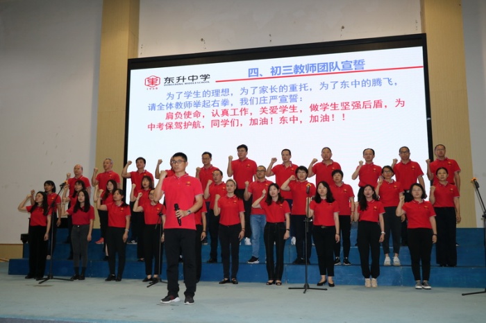 3月18日下午,在距離今年中考百日之際,東升中學舉行了一場熱情蓬勃的誓師大會。伴隨或溫馨或激揚的音樂,誓師大會上口號聲一路響徹下來,初三同學們奔赴中考的激情被點燃起來,他們要昂首闊步走向人生的第一次大考。