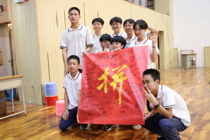 誓師大會在同學們、老師們和家長們熱情簽名“拼”字旗中結束。中考的鐘聲已經敲響,東升中學的初三同學們已經踏上征程。