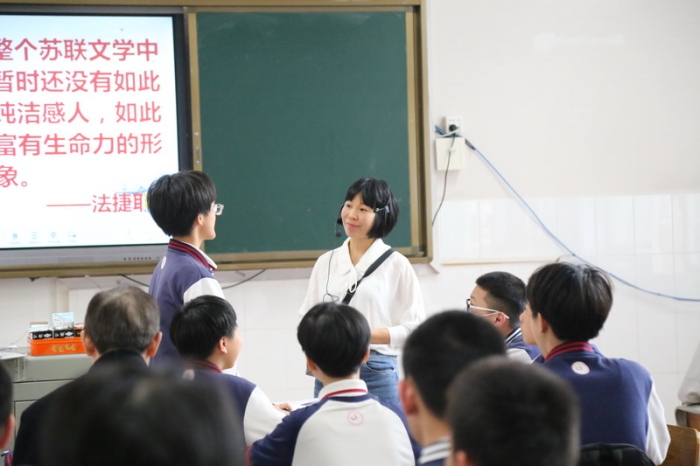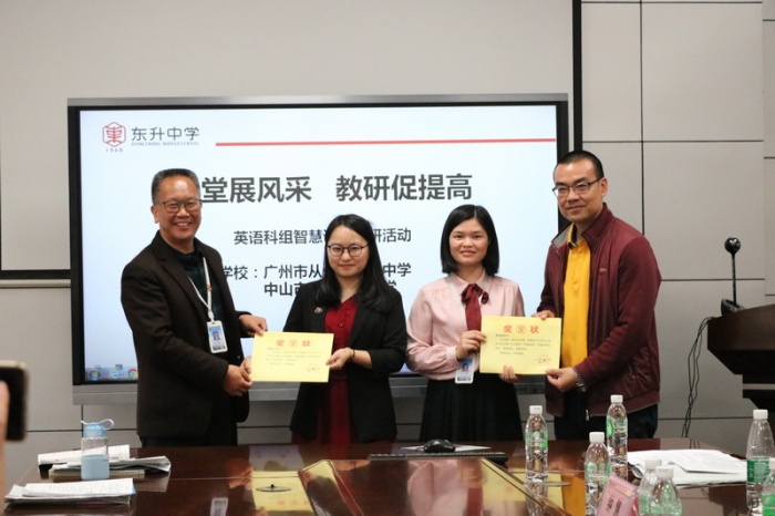 由曾健智校長(zhǎng)、麥浩添副校長(zhǎng)帶隊(duì)的從化七中交流團(tuán),陣容強(qiáng)大。他們分成語(yǔ)文、英語(yǔ)兩個(gè)小組,與東升中學(xué)的同行們一起參加教研活動(dòng)。這當(dāng)中,雙方各有一名語(yǔ)文、英語(yǔ)老師上公開(kāi)課,大批老師前去觀摩。課堂上,授課老師充分運(yùn)用現(xiàn)代技術(shù),增進(jìn)學(xué)生注意力與學(xué)習(xí)的積極性、參與度。大家都把目光集中到智慧課堂如何發(fā)揮出優(yōu)勢(shì)的思考與探尋中。