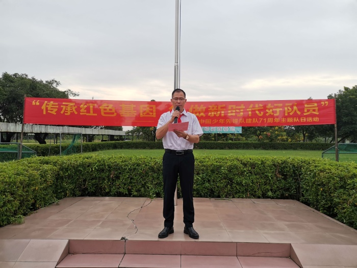 隨后,豐聯(lián)小學(xué)五(1)中隊許思齡同學(xué)作為隊員代表在隊旗下進行了題為《時刻準備著》的演講,還帶領(lǐng)著隊員們重溫了入隊誓詞。而后,豐聯(lián)小學(xué)少工委主任詹前秒向全體隊員們致辭。他希望豐聯(lián)小學(xué)全體學(xué)子們能時刻以少先隊員的標準嚴格要求自己,也希望豐聯(lián)小學(xué)各輔導(dǎo)員們把愛心獻給隊員,把智慧獻給紅領(lǐng)巾事業(yè),做少先隊員最親密的良師益友,期待少先隊員們與輔導(dǎo)員們能共同開創(chuàng)豐聯(lián)小學(xué)少先隊工作的新局面。