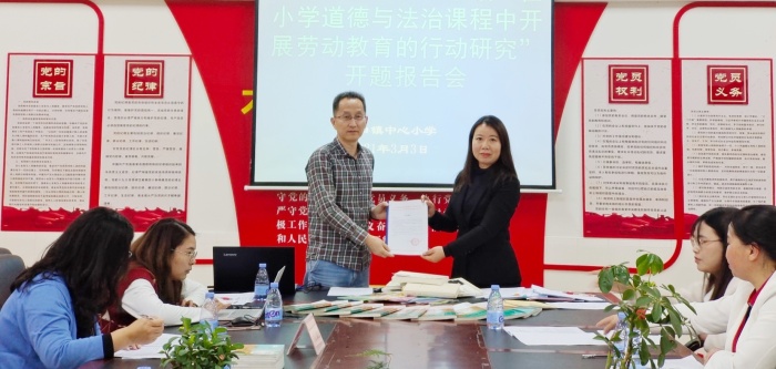 報(bào)告會(huì)上,課題主持人林國(guó)瑜老師就《在小學(xué)道德與法治課程中開展勞動(dòng)教育的行動(dòng)研究》作了開題報(bào)告,從課題研究背景、研究現(xiàn)狀、研究?jī)?nèi)容、研究方法、預(yù)期成果等方面詳細(xì)闡述了課題組對(duì)課題的深入思考和研究的進(jìn)展情況。