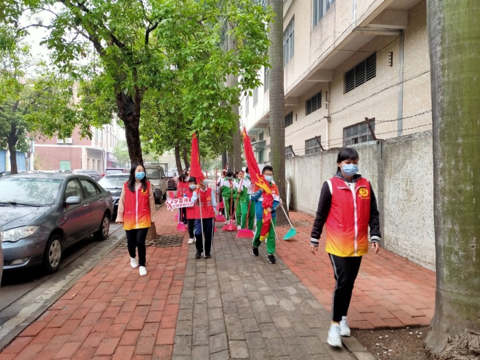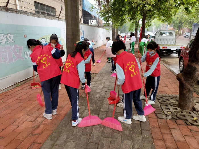 活動中,身穿鮮艷志愿者服的學生們在大隊輔導員的帶領下拿上笤帚、帶著垃圾簍到達指定地點,分工合作對道路兩旁及兩側人行道進行了清潔,清理雜草、積葉、垃圾、擦拭污垢......雖然天寒飄雨,但絲毫沒有影響大家愛家護家的熱情。同學們發(fā)揚不怕苦、不怕臟的志愿者精神,以志愿服務的熱情和勤于勞動的干勁,使街道環(huán)境重新煥發(fā)光彩,鮮艷的紅馬甲在馬路上形成了一道靚麗的風景線。