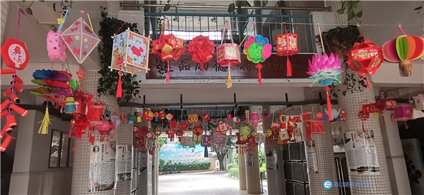 接著,學校對各班上交的燈籠進行精心評選,共評選出兩百多個設計精巧、色彩繽紛、獨具匠心的燈籠作品。一串串富有傳統文化氣息的燈籠于學校中庭展示,課間引來師生們的觀賞。