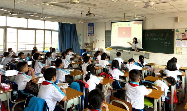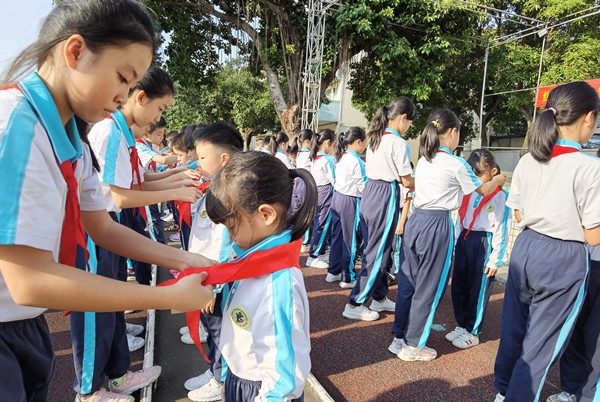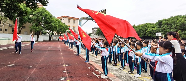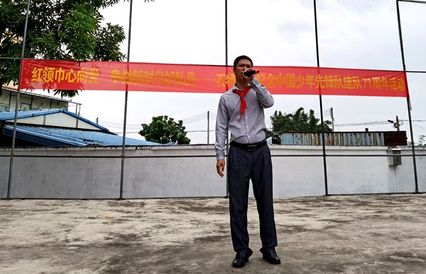 鮮艷的紅領巾在胸前飄揚,星星火炬在隊旗上閃光,少先隊隊員代表為大家獻上了詩朗誦。隊員們的聲音在校園里回蕩,在金秋的暖陽下升騰成希望。最后,學校少工委主任梁容根校長寄語全體隊員,希望大家要樹立遠大理想信念,積極踐行社會主義核心價值觀,要有一顆自律自信自立自強的愛國心。同時,也希望大家要從小事做起,從身邊事做起,積極做德智體美勞全面發展的社會主義建設者和接班人。