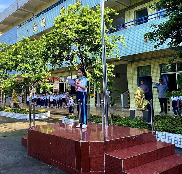 升旗儀式上,五(1)班曾紫恒同學(xué)進(jìn)行了防溺水主題的國旗下演講,以各地歷年發(fā)生的學(xué)生溺水事故為例,以慘痛的真實事件在同學(xué)們的心中敲響警鐘,讓同學(xué)們學(xué)會尊重生命,善待生命。