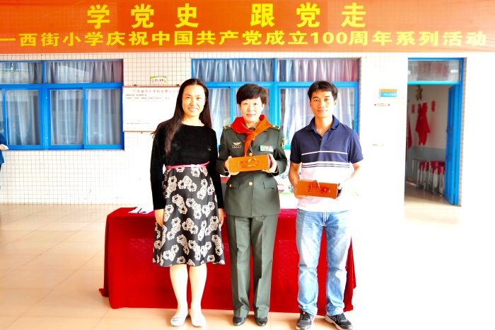 講座特邀陸軍軍事交通學院政治教研室張艷萍副教授為主講人,她長期從事黨史、軍史、中國近現代史教學與研究,所著黨史讀物,貼近少年兒童的閱讀習慣和接受程度,以生動形象的黨史故事作為切入點,由小到大,由淺入深,引發思考共鳴,開辟出向青少年進行黨史教育的新路徑。在主持人的介紹下,張艷萍副教授帶著和藹親切的微笑與孩子們見面了,由少先隊員代表為她戴上紅領巾。活動伊始,全體起立并合唱歌曲《沒有共產黨就沒有新中國》。在嘹亮的歌聲中,本次活動拉開了序幕。活動第一項,由張教授為同學們講述黨史。張教授告訴孩子們,100年前,中國共產黨在中華民族存亡絕續的關鍵時刻應運而生,這是一個偉大的里程碑。接著,張教授以耳熟能詳的英雄人物和感人的戰爭故事切入,讓孩子們明白了中國共產黨前仆后繼,舍生忘死的精神力量,并在提問環節引導孩子們如何在當今社會學習黨的精神,跟隨黨的腳步,做一個品學兼優的好學生,將來為社會的發展貢獻自己的力量。活動第二項,由章小蘭校長為張艷萍副教授和《廣東第二課堂》雜志社張家瑜主編送上紀念品,感謝他們為西街小學的孩子們帶來豐富的黨史知識。最后,章校長作活動總結發言。她表示,回顧黨的光輝歷史,是為了更好的總結歷史經驗,把握歷史規律,增強開拓前進的勇氣和力量,并對全體同學寄予了美好的期望。