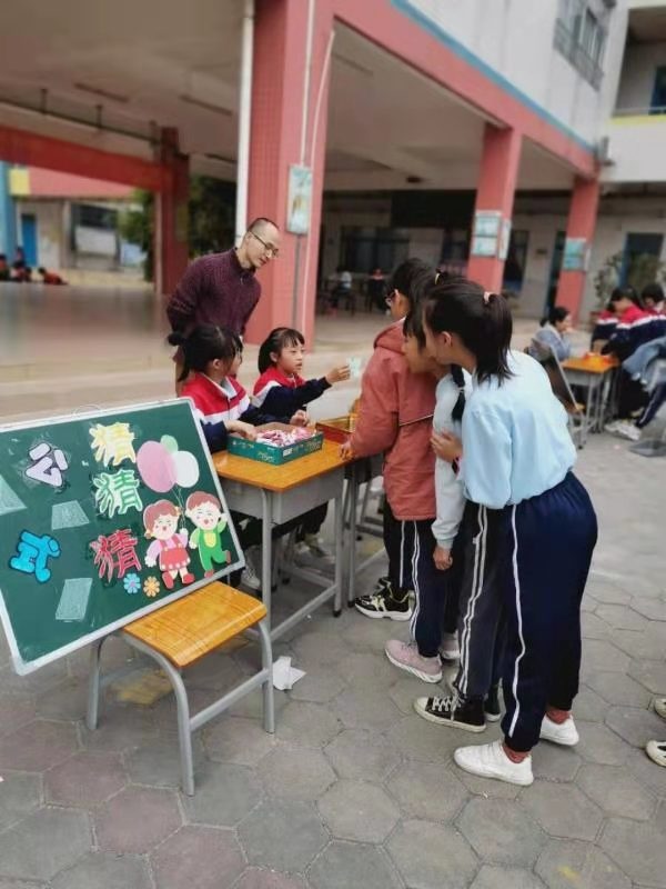 活動現場孩子們情緒高漲,興趣盎然。活動項目豐富多樣,趣味盎然。在語文趣味活動頗具童趣,色彩鮮艷的卡片,充滿童真的人物設置,兼具知識性和娛樂性,讓孩子們在玩中學,學中玩。通過開展此活動既培養了孩子們的觀察能力,也讓孩子們體會到了學習語文知識要認真觀察、細心辨析的道理。數學活動的主要形式是教師制作有關本年級知識點的趣味活動,比如一二年級的教師制作了認識時間,口算,搭配問題等的活動;三四年級的教師制作了數獨,一筆畫,巧算24點等的活動;五六年級的教師制作了列方程式,找等量關系,九宮格等的活動。各個趣味活動都為學生準備了相應的獎品,一般采取答對一個題目,獎勵一個獎品的形式,大大激發了學生參與本次活動的積極性。在英語活動中,孩子們在聽音拍詞、看圖讀單詞、看動作猜單詞、歌曲接龍等游戲活動中玩得興致勃勃。這些活動培養了孩子們的聽力、觀察能力、記憶單詞的能力和團隊合作能力。豐富多彩的英語活動,為孩子們提供了一個開放、自由、活躍的英語交流平臺,為孩子們的課余生活增添了樂趣,孩子們在說英語,唱英語歌、用英語的過程中,體會學習英語的快樂和成功的喜悅。