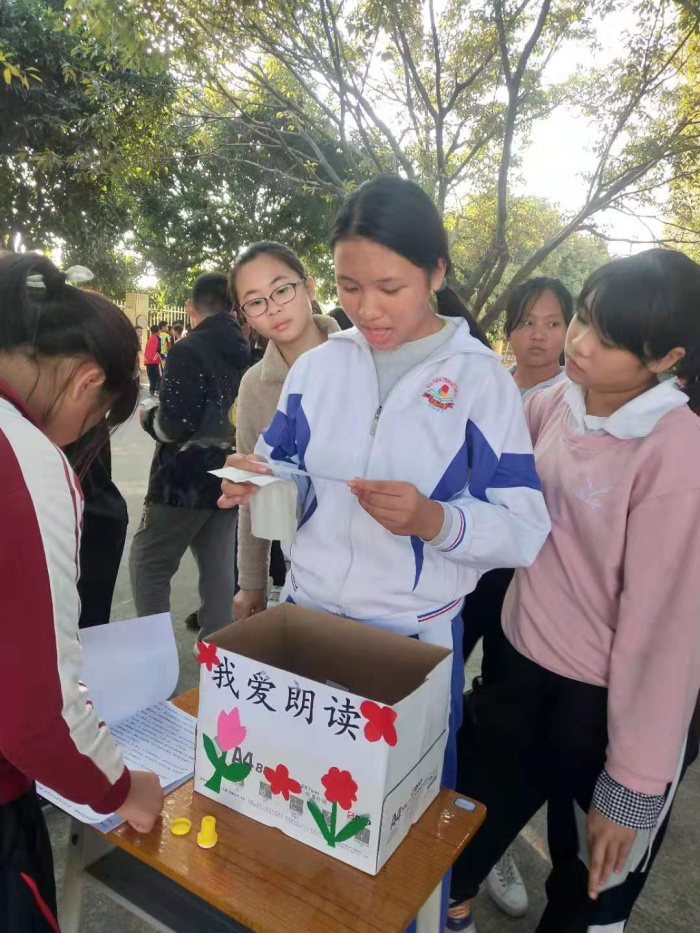 冬日暖陽(yáng)高照。12月8日下午,下南小學(xué)如期舉行 閱讀游園活動(dòng)。此次活動(dòng)圍繞著“課外閱讀”這一大主題進(jìn)行,內(nèi)容囊括課外學(xué)習(xí)的語(yǔ)文知識(shí)、各年級(jí)每學(xué)期制定的十本閱讀書(shū)目、各年級(jí)本學(xué)期制定的經(jīng)典吟誦內(nèi)容等。為了增強(qiáng)活動(dòng)性和趣味性,各年級(jí)開(kāi)設(shè)的項(xiàng)目也各不相同,有:成語(yǔ)王國(guó)(成語(yǔ)接龍)、結(jié)“對(duì)”而行(對(duì)對(duì)子)、對(duì)答如流(古詩(shī)檢測(cè))、說(shuō)說(shuō)我的最?lèi)?ài)(好書(shū)推薦)等,題型有選擇題、填空題、判斷題、問(wèn)答題等等。