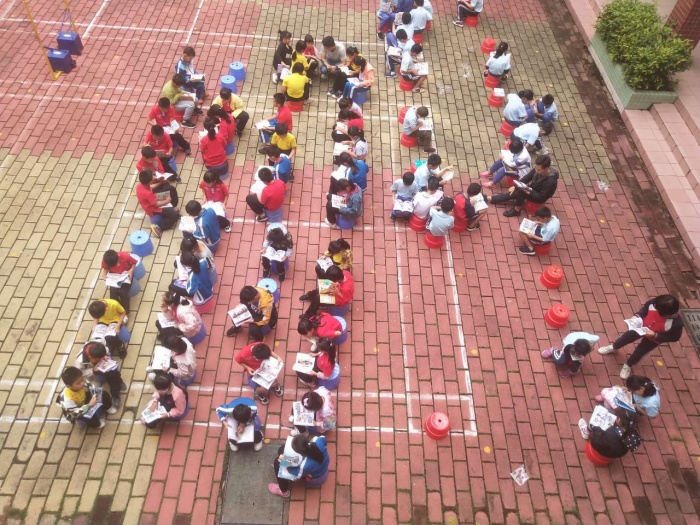 活動期間,首先在學校舉行書展,學校一千多名師生共同走進書香世界,在知識的海洋里徜徉。根據學校安排,每節課都會由老師帶領不同的班級到書展現場。無論課間還是上課,我們都能聽到歡呼雀躍的孩子們興高采烈地奔往書展現場。書展現場更是常常里三層外三層地圍滿了天真可愛的孩子們。