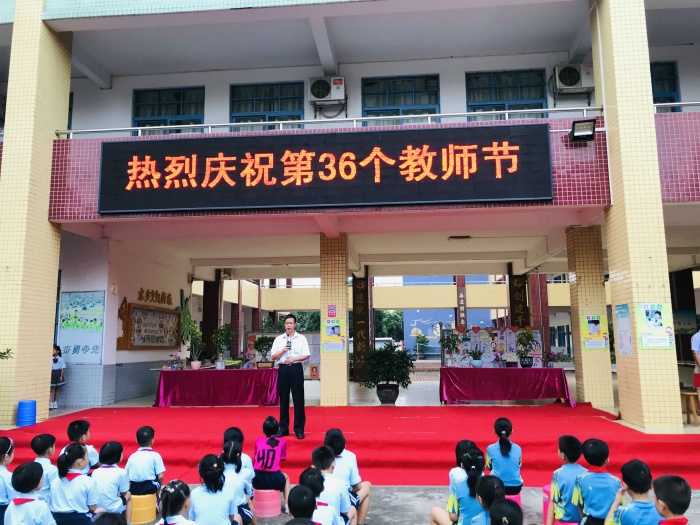 在清爽的秋風與溫暖的陽光中,下南小學為了慶祝第36個教師節,讓每個學生尊重教師,并用實際行動表達對教師的敬意,港口鎮下南小學于2020年9月10日上午在操場舉行了一場儉樸而又隆重的教師節慶祝主題教育活動。