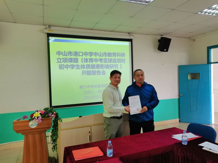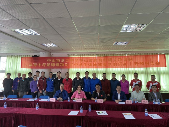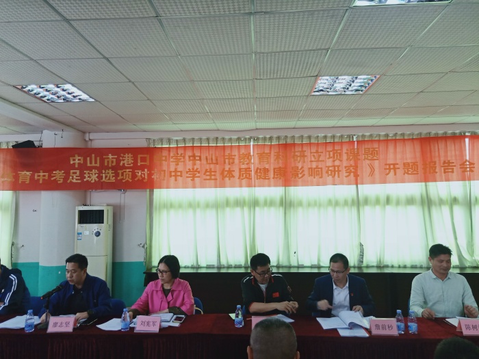 3月10日上午,港口中學市級體育課題《體育中考足球選項對初中學生體質健康影響研究》舉行開題儀式。本次課題開題儀式邀請了中山市華僑中學王世勛老師、阜沙鎮豐聯小學詹前秒校長,港口鎮教育和體育事務中心劉憲軍主任、陳樹洪專干蒞臨指導,港口鎮各中小學體育科組長、骨干教師、港口中學體育課題組全體成員參加了開題儀式。