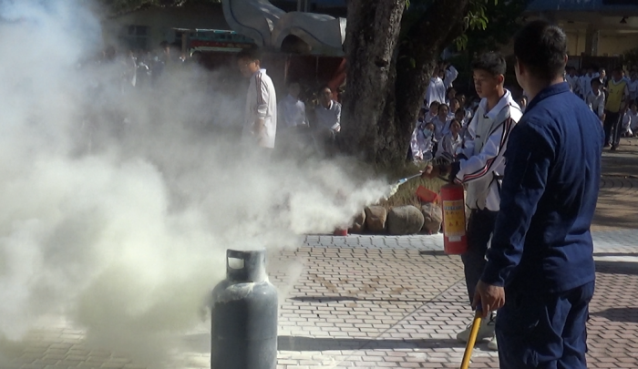 隨后劉啟堂指導(dǎo)員手把手地指導(dǎo)教職員工、學(xué)生進(jìn)行滅火實(shí)操演練。管德豐校長(zhǎng)、賴其森主任、教師、廚師、保安、教官和學(xué)生代表,紛紛拿起滅火器,對(duì)著熊熊烈火噴射干粉,火立即被撲滅,然后迅速擰緊煤氣罐。廣大教職員工、學(xué)生實(shí)操演練熱情高漲,在實(shí)操中,感受到火勢(shì)的兇猛和滅火器的威力,滅火的正確姿勢(shì),從而提高了火災(zāi)處理應(yīng)變能力。